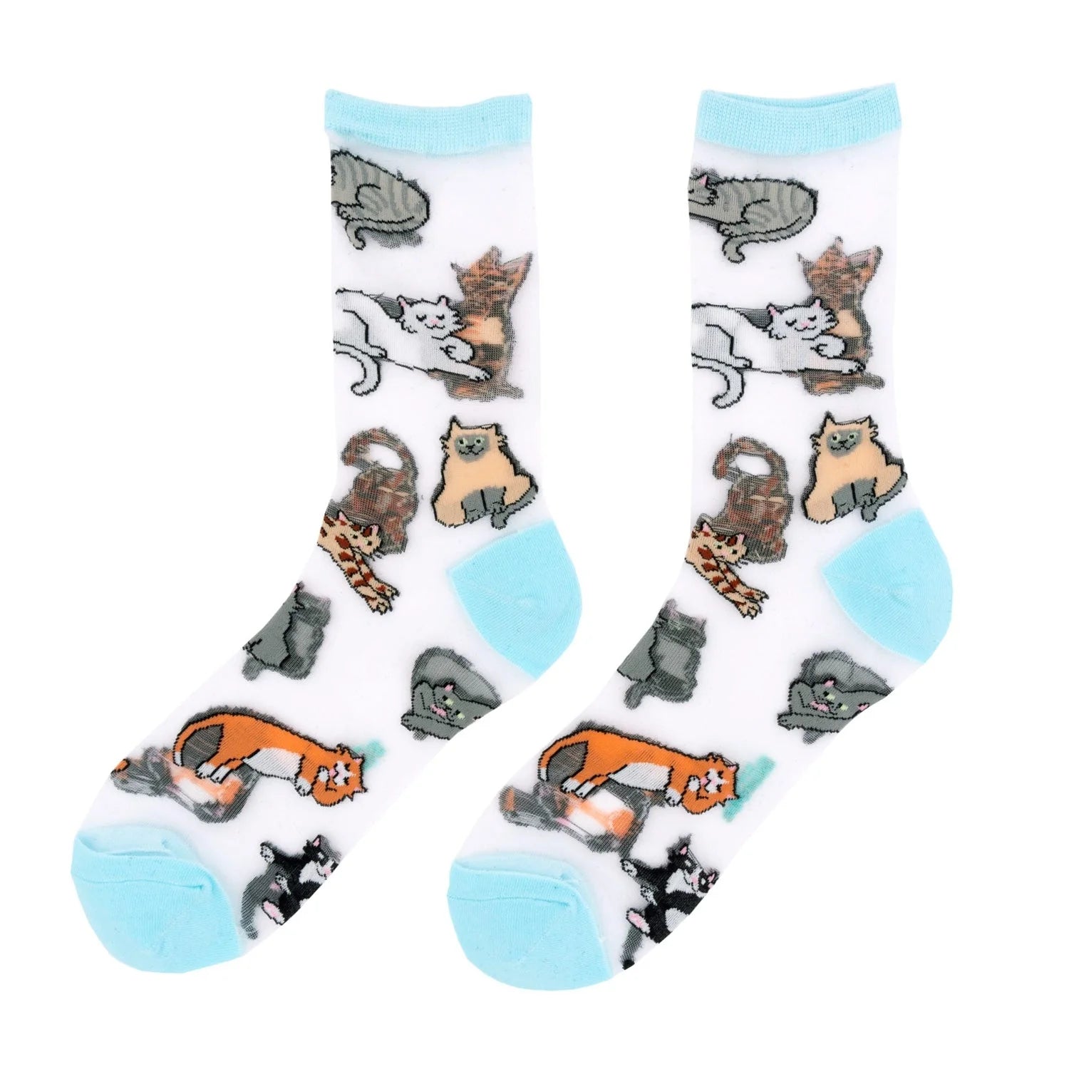 Sheer socks putting the spotlights on our favourite furballs, in their sweetest behaviours! One size.